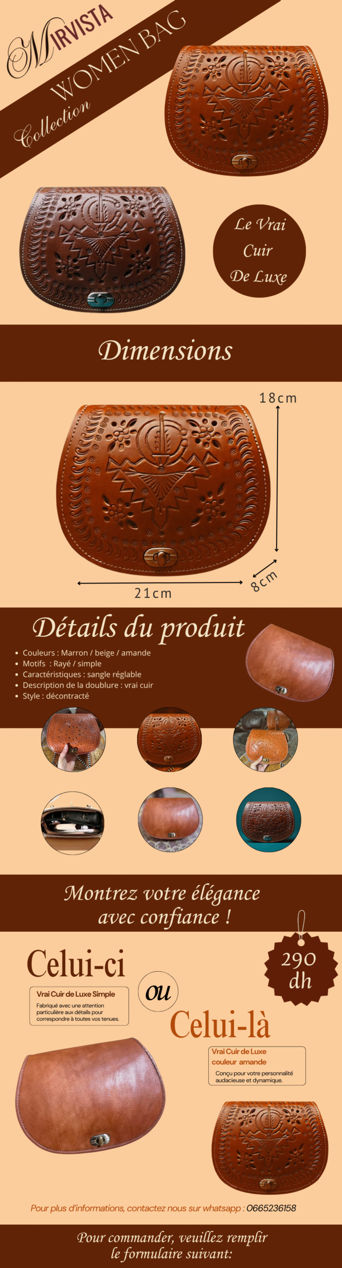Veuillez activer JavaScript dans votre navigateur pour remplir ce formulaire.Veuillez activer JavaScript dans votre navigateur pour remplir ce formulaire.Votre sac préféré *Marron 290 dhBeige 290 dhAmande 290 dhSimple 290 dhL'offre: 2 sacs = 3 sacs Ville complet N° Nom complet *N° de Téléphone *Ville *Acheter avec paiement à la livraison